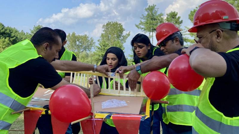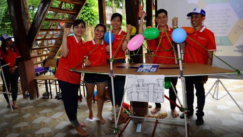 Teams kicked off with designing the bridge with teams networking to discover who their suppliers and customers were and then they got hands on constructing the components of the bridge. Magnificent outcome was achieved by all. It far exceeded our expectations - a complex and rewarding team building activity.